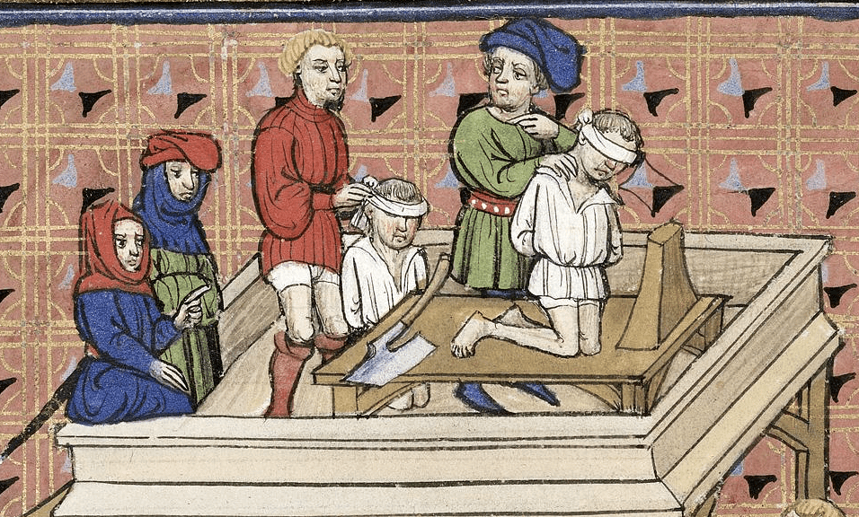 Historia bën fjalë për një xhelat me emrin Uang Lun, i cili jetoi gjatë mbretërimit të perandorit të dytë të dinastisë Ming. Ishte i njohur për aftësinë dhe shpejtësinë me të cilën priste kokat e të dënuarve, por gjatë gjithë jetës së tij e kishte bërë punën me një synim sekret që ende nuk ishte realizuar: të presë aq shpejt qafën e dikujt sa koka e të ndjerit të qëndrojë ende mbi trup. U përpoq dhe u përpoq dhe më në fund, në ditëlindjen e tij të gjashtëdhjetegjashtë e plotësoi këtë ambicie.